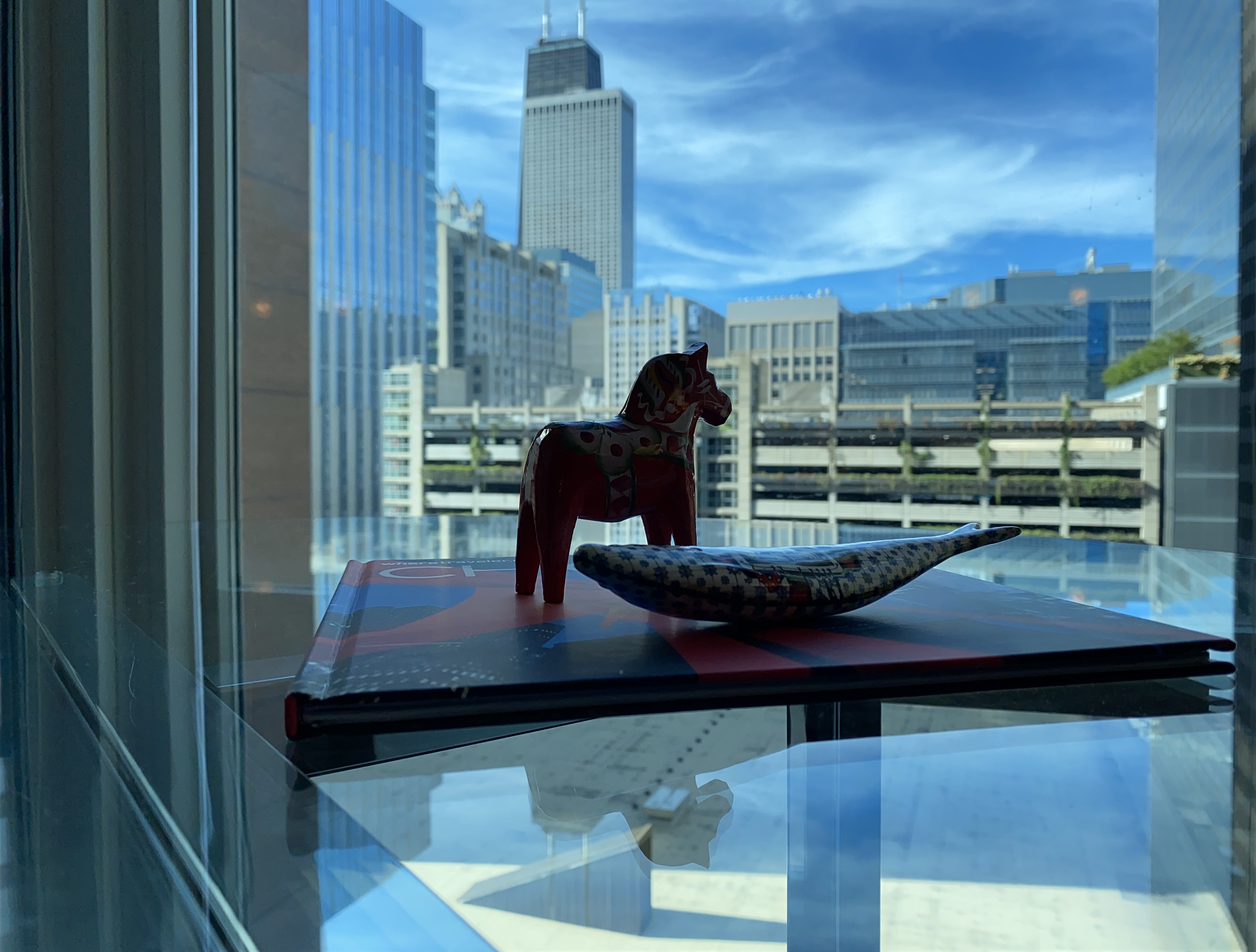 Our apartment view: The orange pony was a souvenir my grandmother Momalee brought me when she visited Portugal in 1980. I took it with me to Lisbon. What joins it now is a sardine–considered a historic Lisbon icon–the Gibsons gave us when we left Lisbon for Chicago.